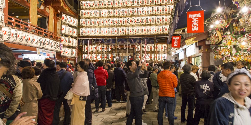 午前0時前になると、鳥居周辺はお参りをする方で列が出来ます。